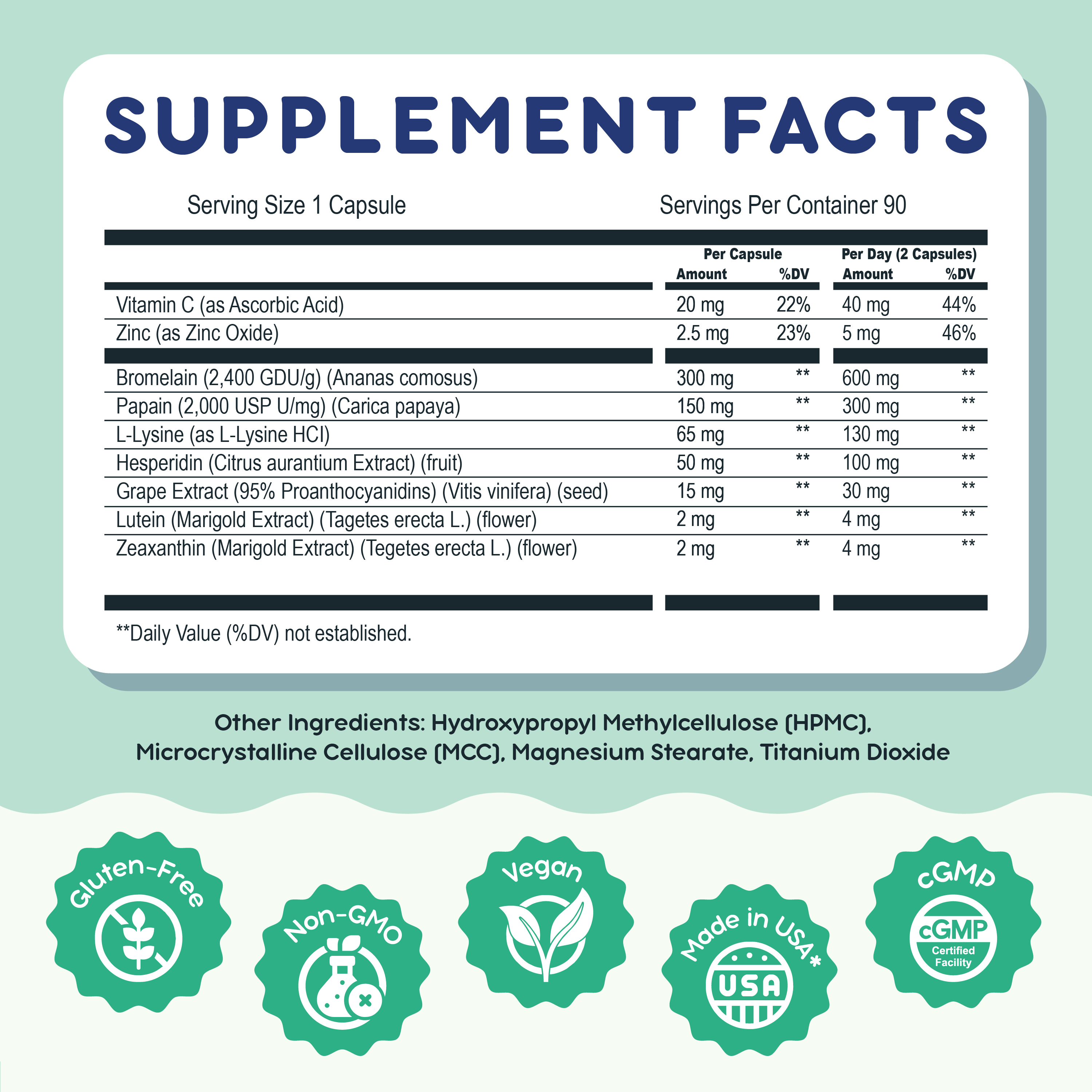 We are in the process of seeking approval from the FDA, and once approved, we will update our formula. In the meantime, rest assured that our current formula is packed with a variety of great nutrients to support your eye and body health.